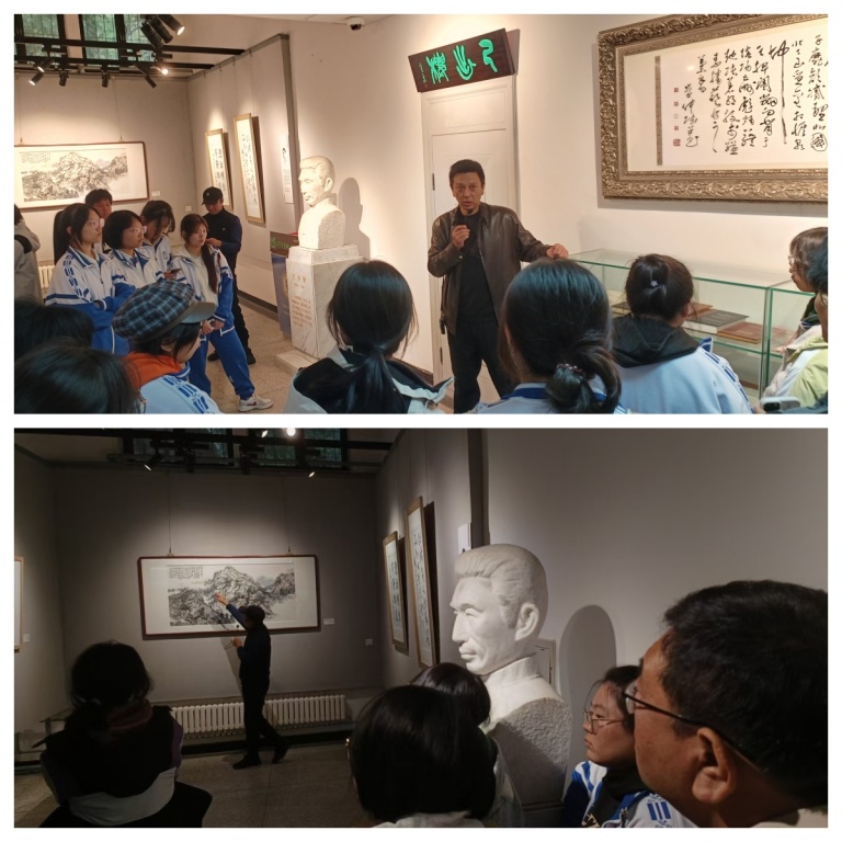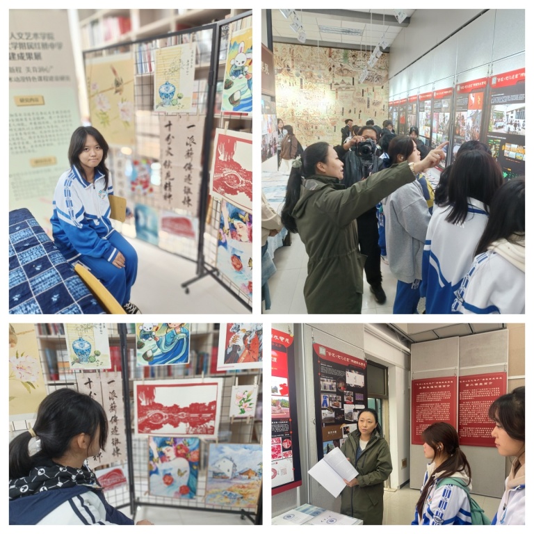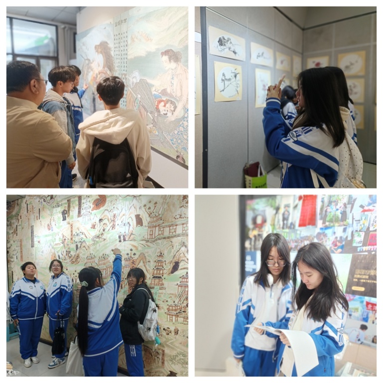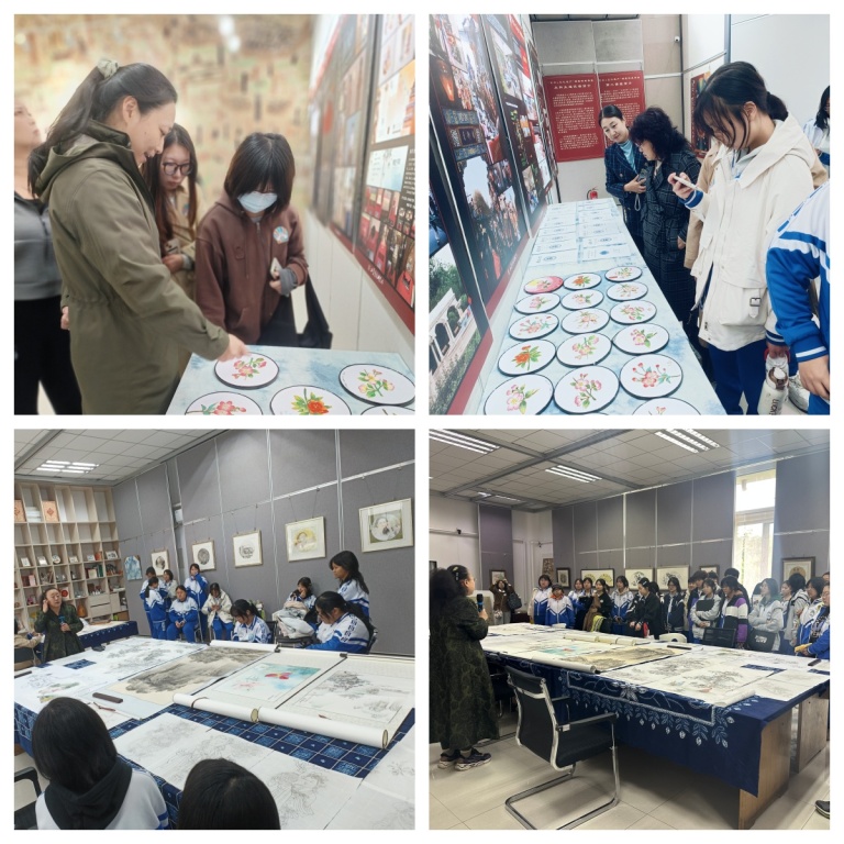 同学们首先来到天津大学工笔重彩研究所,观摩了天津大学人文艺术学院“艺术+文化遗产”课程群成果展暨首届民俗艺术节展览,聆听天大曹教授和老师们讲述美术专业知识在生活中的应用,感受综合性大学的跨学科艺术氛围,体会知识与实践相结合的乐趣,激发艺术学习兴趣和探索精神,更好地热爱生活,追求美好。