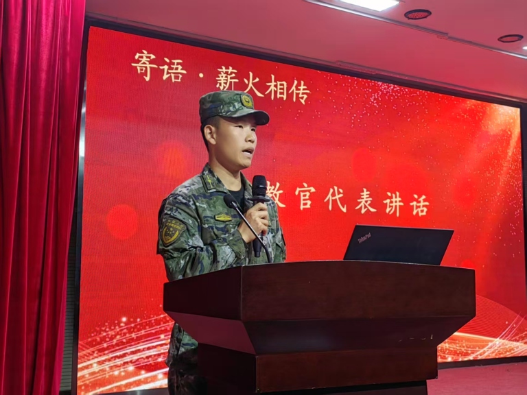 教官代表在发言中回顾了与同学们共同训练的难忘时光,肯定了大家的成长与蜕变,并寄语同学们“把军训精神带到课堂、带入生活”。