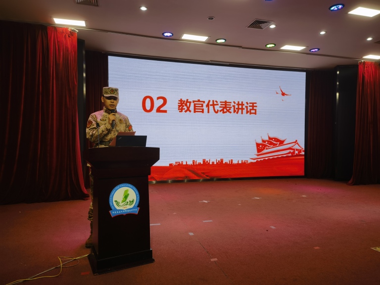 仪式中,教官代表上台发言。教官们将严格按照训练计划,科学施训、文明施训,以良好的军事素养和过硬的作风完成此次国防教育工作。
