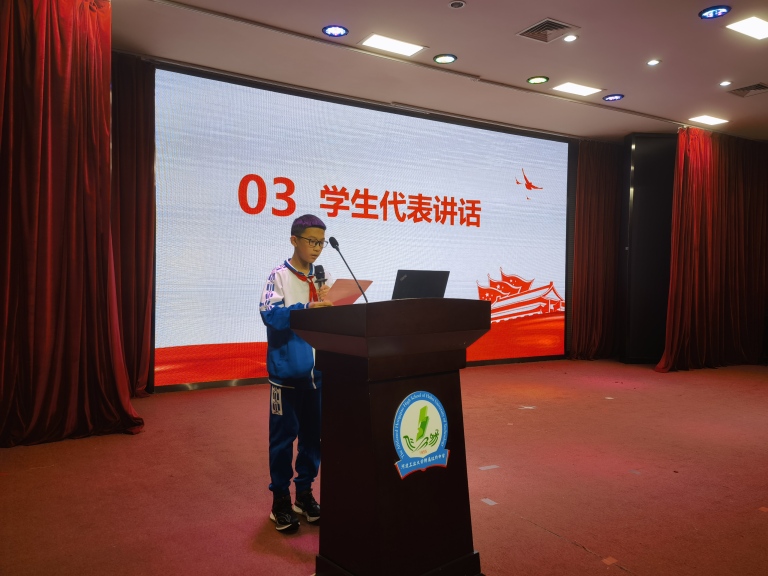 仪式中,七年级学生代表在发言中表达了对国防教育活动挑战的期待。他代表全体新生庄严承诺,在国防教育期间将尊重教官,遵守纪律,一切行动听指挥;发扬团结互助精神,刻苦训练,磨砺意志,保证完成各项训练任务,以优异的训练成果向学校、老师和家长汇报。