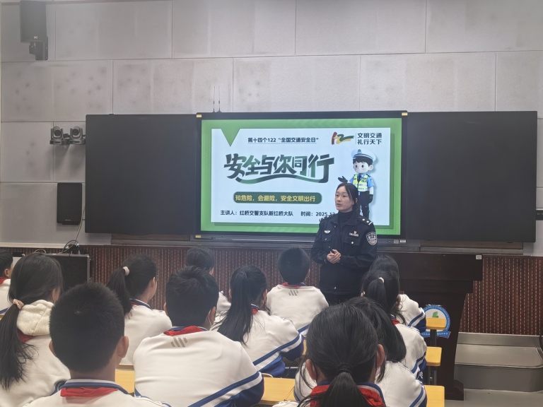 冬阳暖照,文明同行;大道安澜,礼润人心。在“全国交通安全日”的温馨余韵中,我校以“文明交通 礼行天下——知危险,会避险,安全文明出行”为主题的实践活动圆满落幕!本次活动特邀交警红桥支队新红桥大队警官莅临指导,通过实地观摩、知识讲座、有奖问答等多元形式,为师生们送上了一堂生动鲜活的交通安全“必修课”。