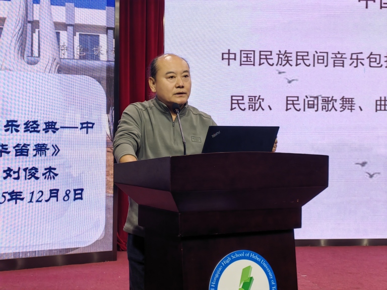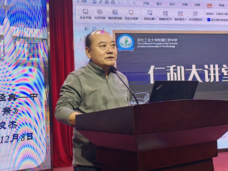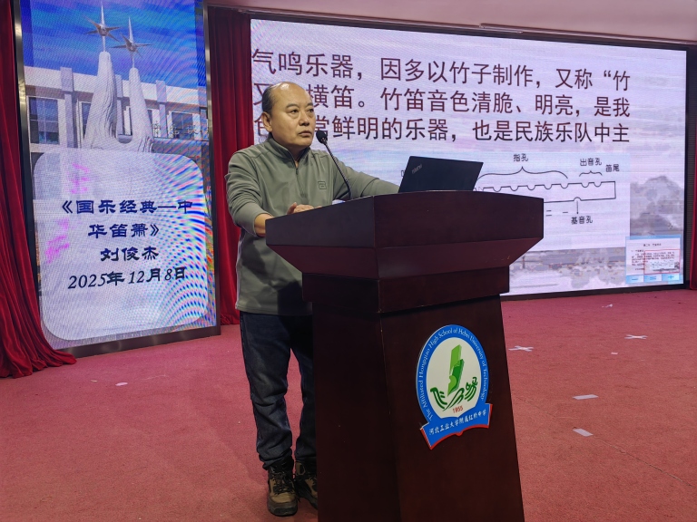 2025年12月8日,河北工业大学附属红桥中学品牌系列活动“仁和大讲堂”第五十九期在校园内成功举办。本期讲座特邀河北工业大学艺术教研室刘俊杰副教授担任主讲,为师生带来题为《国乐经典—中华笛箫》的专题讲座。