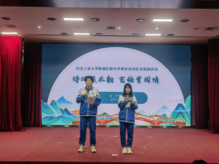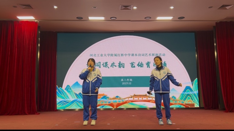 12月9日,河北工业大学附属红桥中学“诗润课本韵,艺传育园情”课本诗词艺术展演在报告厅正式拉开序幕。我校党委书记孙鸿毅莅临指导。