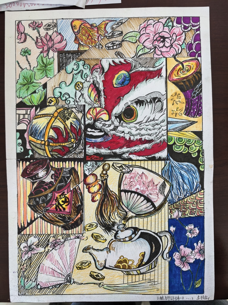 此次活动里,大家巧用画笔,将天津特色建筑、美食风俗化作一张张精致的绘画作品,在校园画展中集中展示了这些优秀作品。