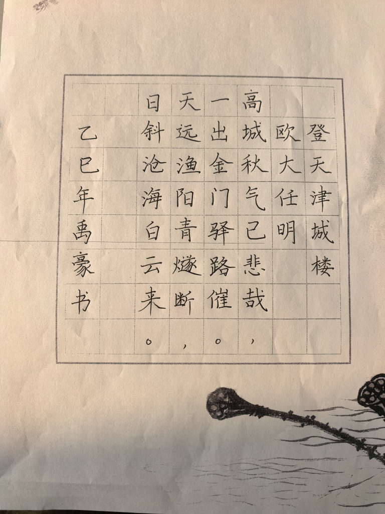 书法比赛中,同学们以笔墨传情,书写津沽文化相关诗词名言。