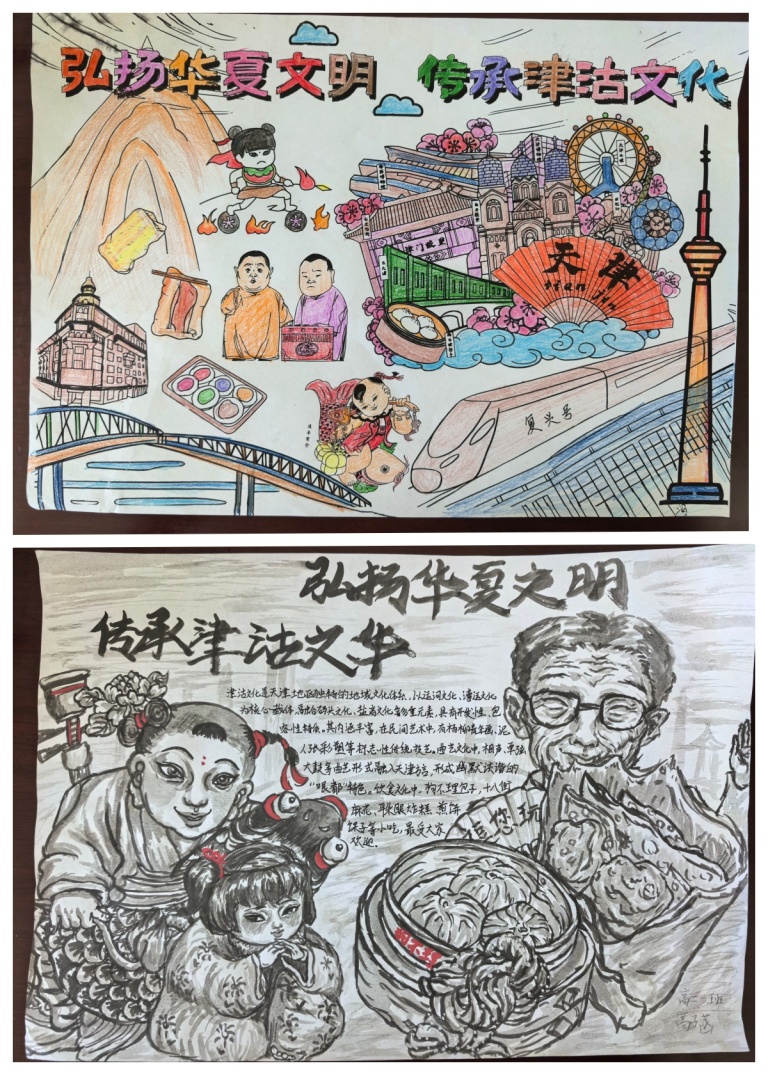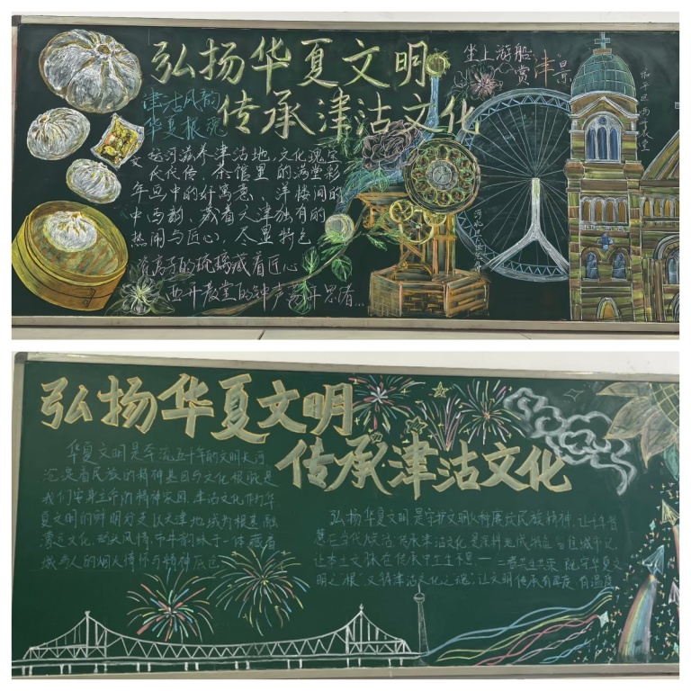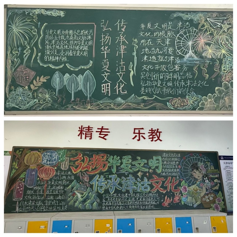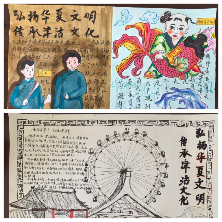 活动一经启动便点燃全校热情。“一笔一画绘津沽”板块中,各班板报创意十足,津沽诗词、民俗典故与精美插画相映成趣。