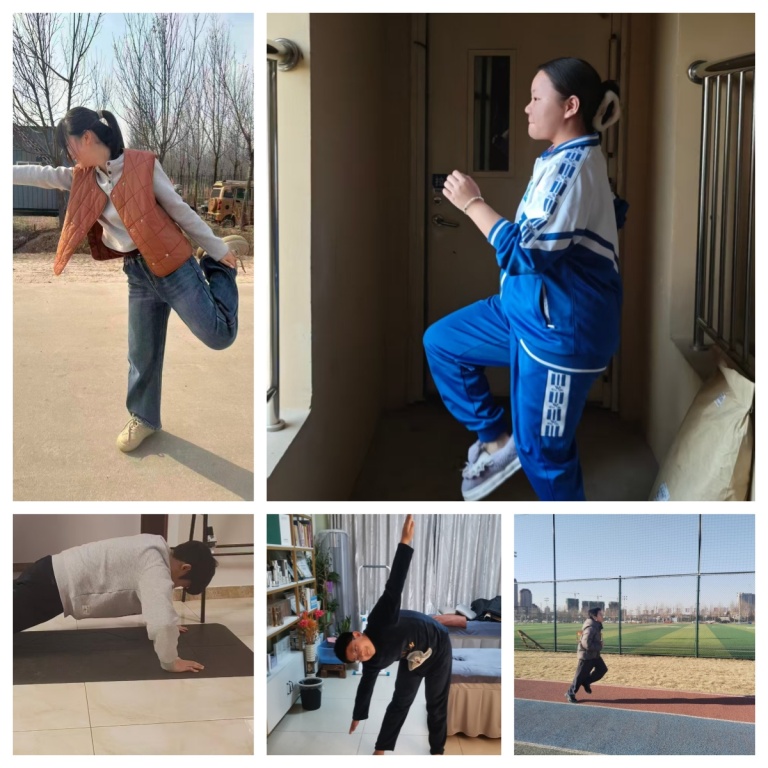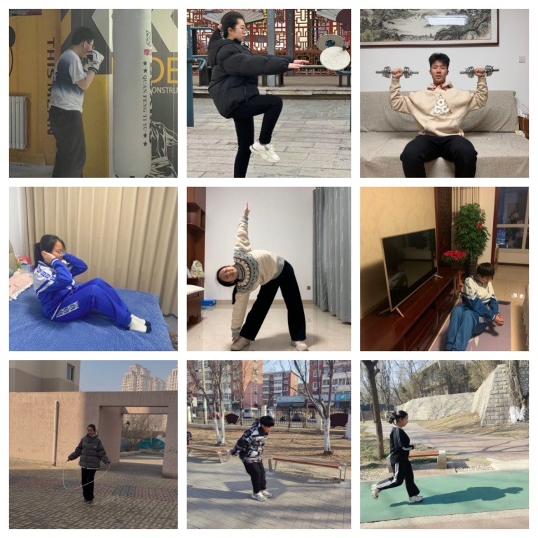 寒假居家期间,我校积极倡导学生坚持体育锻炼,养成健康生活习惯。同学们根据自身情况,开展形式多样的居家运动:跳绳、仰卧起坐、平板支撑、瑜伽拉伸、室内跑跳、力量训练等,每日坚持打卡,在运动中增强体质、磨炼意志。不少同学还与家人一同锻炼,在互动中增进亲情,让健康生活方式融入家庭日常,以饱满的精神状态迎接新学期。