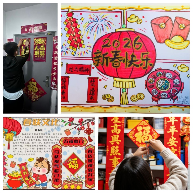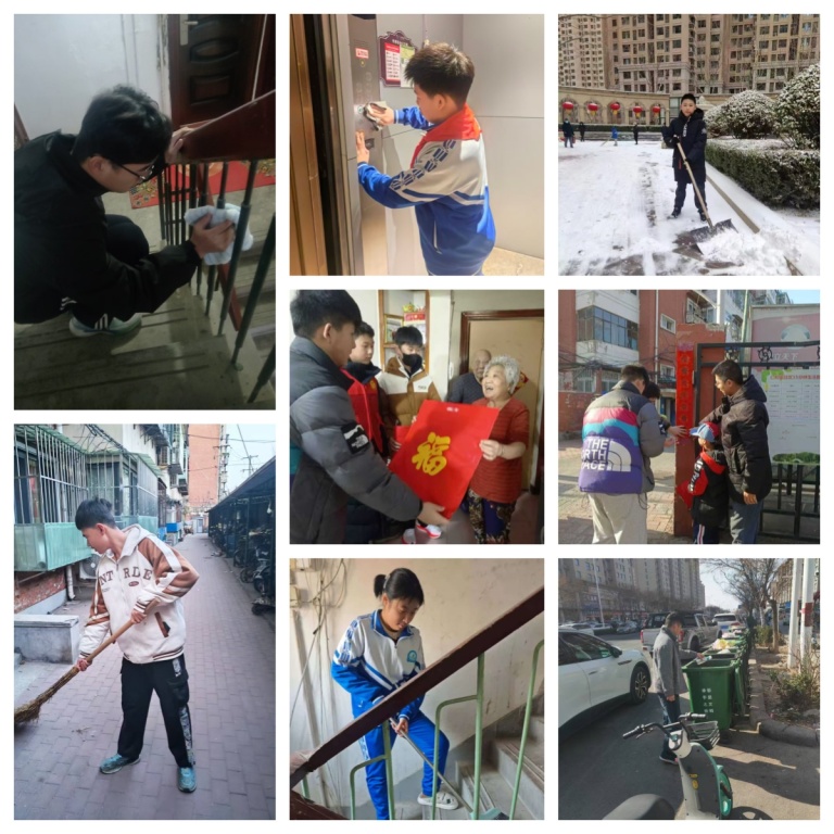 寒假期间,我校学子积极投身各类公益实践:他们走进社区开展卫生清扫,为社区环境美化贡献力量;走进养老机构,为老人送上新春祝福;参与新春送福公益活动,现场书写春联、剪刻福字,将满满的美好祝福送给邻里街坊。在付出中,同学们体会奉献的快乐,增强了社会责任感。