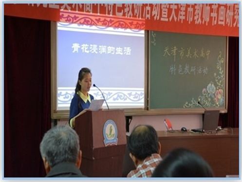 时天霞老师在方欣美术教师团队系列展示活动中做经验介绍
