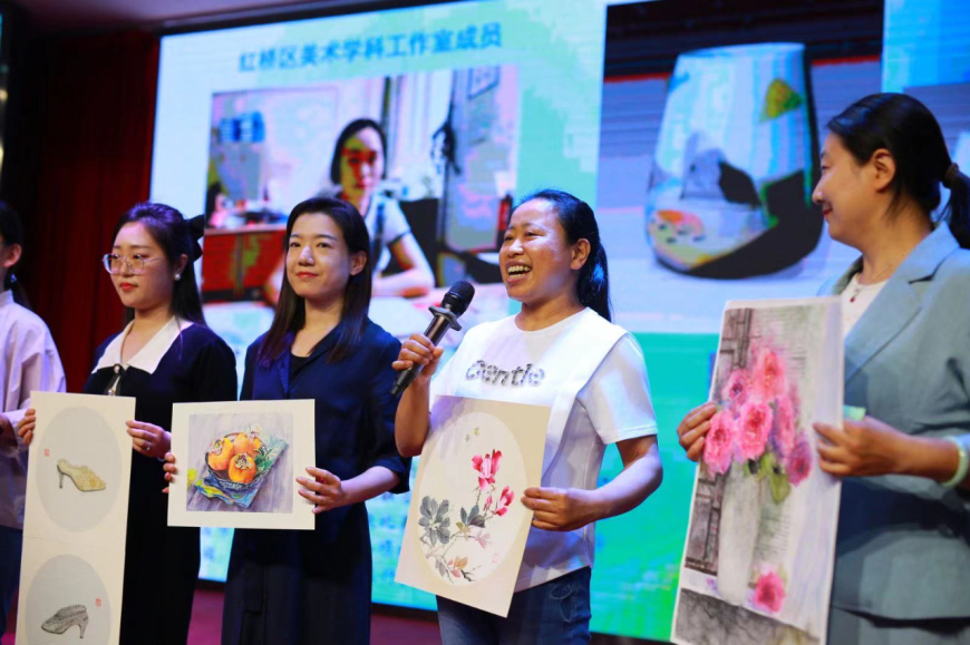 美术学科组长张蓉老师参加教师节大会发言,做学科组团队介绍